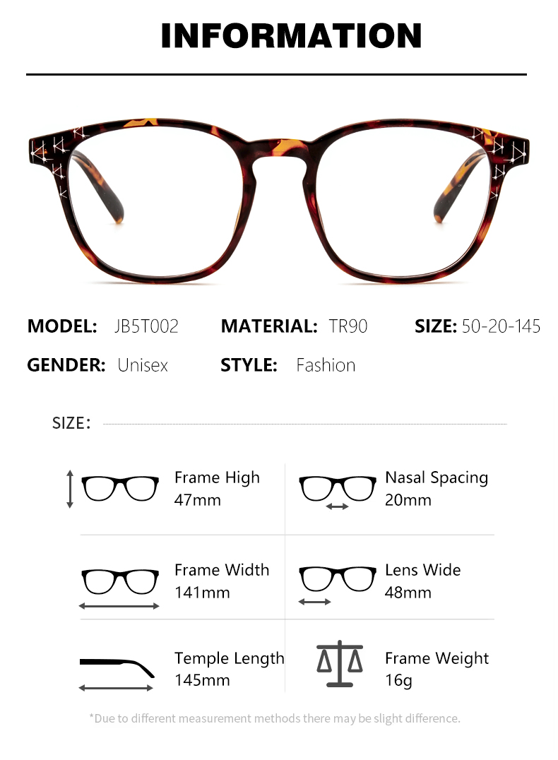 Classic Eyeglass Frames TR90 Lightweight Frames Suitable for Myopia and Blue Light protection